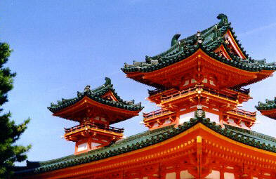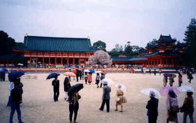 Heian-jingu is the shrine belonging to Jidai Matsuri, a festival with old costumes representing 1100 years of Kyoto's history: