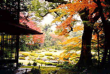 Murin-an is an example for the "borrowed scenery" in landscape gardens - you can see Higashiyama hills far away.