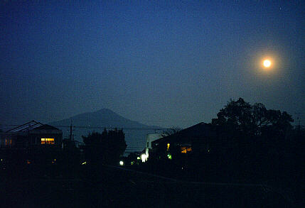 Hiei-san at full monn seen from the river banks