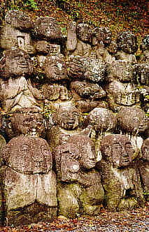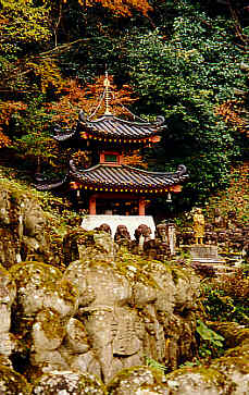 A small temple on the way to Kiyotaki, showing many stone carved Rakan, very unusual in amusing expressions: